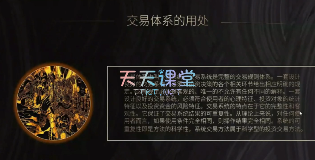极道·黑金系列精英系统体系课,是十年实战经验的结晶,为您呈现一个全新的交易系统构建过程。课程涵盖了交易体系的建立方法、选股选时标准、止损止盈技巧,以及心态维护和爆点潜伏等核心内容。同时,您将学习到龙头思维的认知建立、必赢模型之资金管理,以及以匠人精神训练自己的方法。此外,辅助课程还详细讲解了个股攻防线战法和板块动态攻防线策略,助您全面提升交易技能和实战能力。无论您是交易新手还是有一定经验的投资者,本课程都将为您带来宝贵的启示和实用的指导。立即加入,开启您的交易精英之旅!