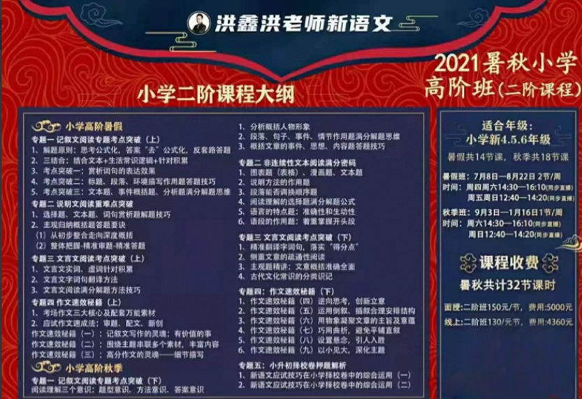 课程介绍: 洪鑫洪老师的小学语文2021暑秋高阶班(二阶)【共:11.9 GB】 掌握语文提分技巧,万变不离其宗,讲的全部是应试和重点基础内容,适合4-6年级同学。 声明:本站所有文章,如无特殊说明或标注,均为本站原创发布。任何个人或组织,在未征得本站同意时,禁止复制、盗用、采集、发布本站内容到任何网站、书籍等各类媒体平台。如若本站内容侵犯了原著者的合法权益,可联系我们进行处理。