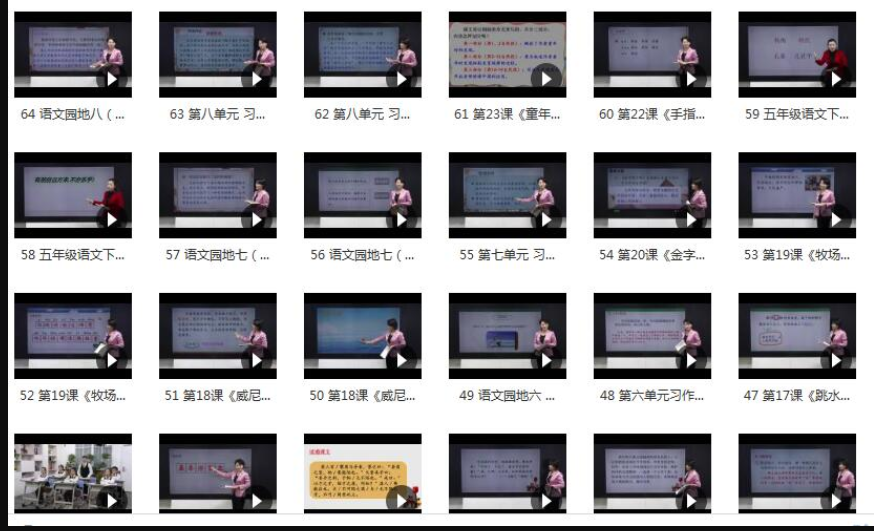 小学五年级语文下册课本知识点同步教学视频(部编版+人教版 下学期 64小讲)【共:13.4 GB】