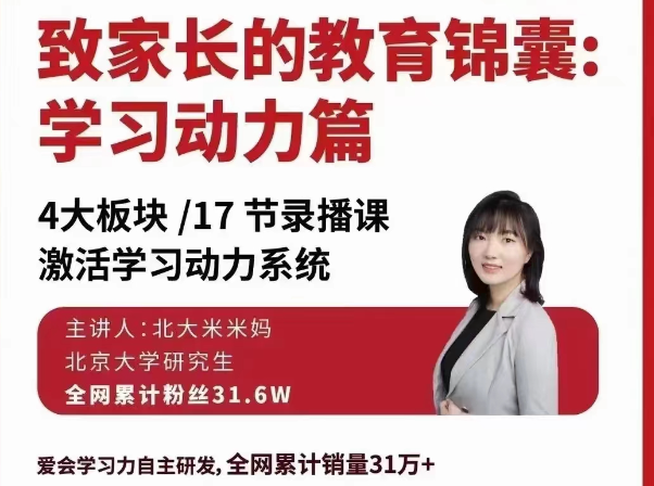 北大米米妈-致家长的教育锦囊:学习动力系列课,4大板块,17节录播课,激活学习动力系统。