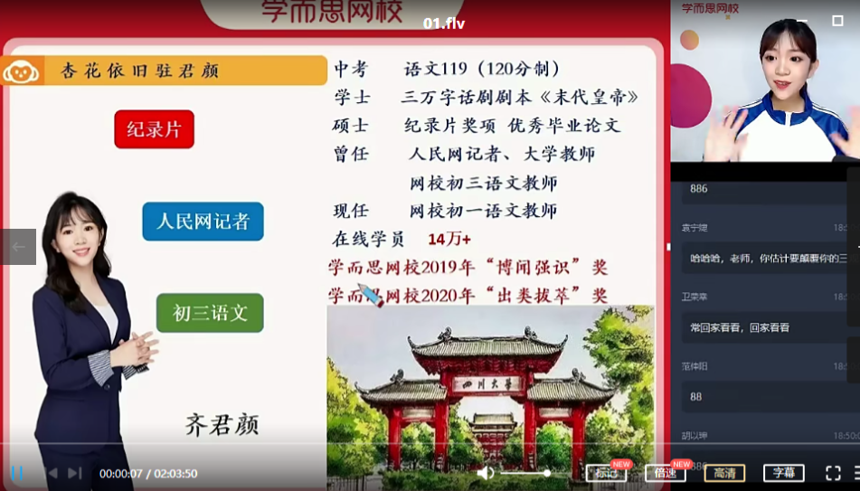 (齐君颜的【2020-秋】初一语文阅读写作直播班。【共:5.13 GB】