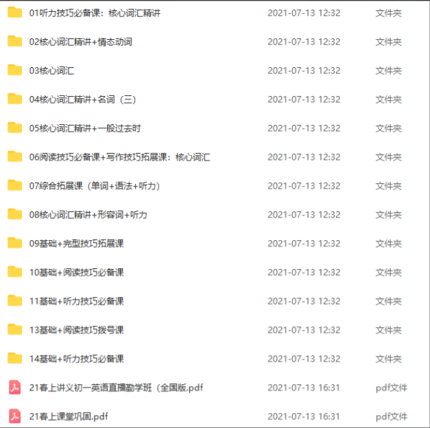 刘飞飞的【2021-春】初一英语直播勤学班(全国版)。【共:5.03 GB】