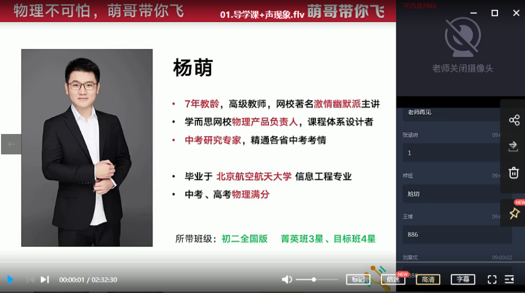 杨萌:2020年暑假初一升初二物理直播目标班(全国版】【共:5.67 GB】