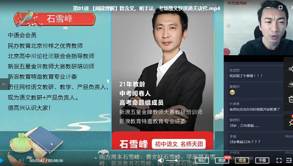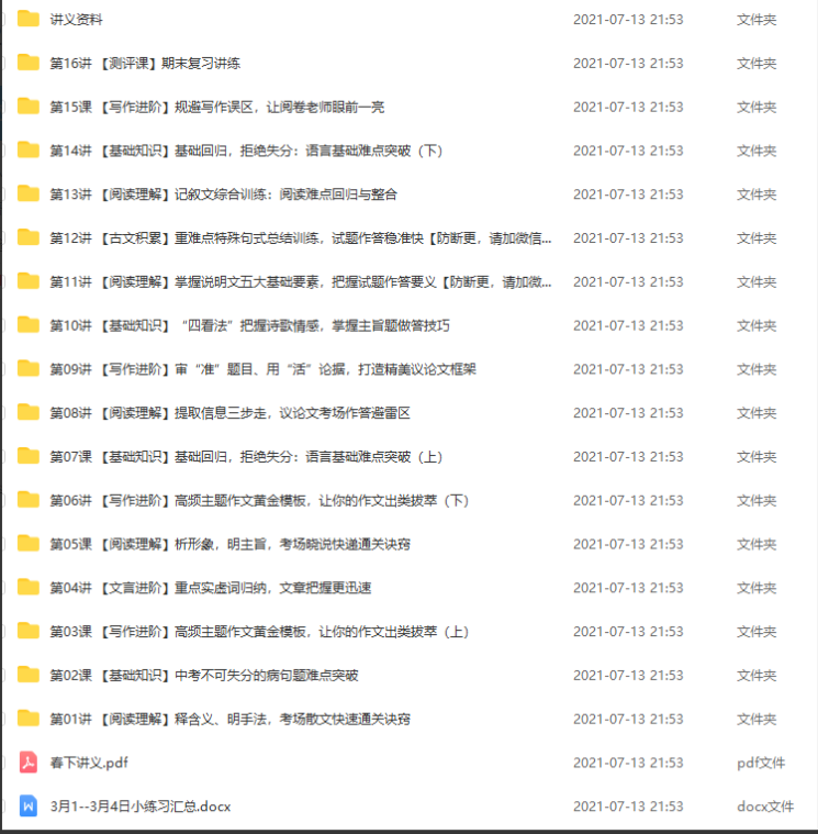 石雪峰:【2021-春】初二语文阅读写作直播班【共:10.9 GB】