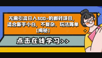 无需引流日入300+的搬砖项目,适合新手小白,不复杂、玩法简单【揭秘】,团队实测有效,小白轻松上手。不复杂、玩法简单,大家认真仔细看完教程,按照教程去做,就可以实现收益最大化。