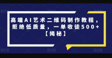 高端AI艺术二维码制作教程,拒绝低质量,一单收徒500+【揭秘】。