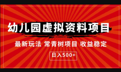 幼儿园虚拟资料项目,最新玩法常青树项目收益稳定,日入500+【揭秘】。