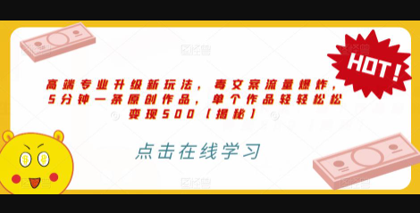 高端专业升级新玩法,毒文案流量爆炸,5分钟一条原创作品,单个作品轻轻松松变现500【揭秘】,今天给大家带来的项日是《毒文案升级玩法,流量爆炸,5分钟一条原创作品,单个作品变现500+》,一部手机即可操作该项目,项目实操。