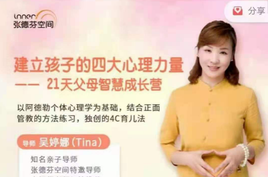 吴婷娜-建立孩子的四大心理力量|21天父母智慧成长营,这个课程的主要目的是通过培养孩子的四大心理力量,帮助他们在成长过程中更好地应对各种挑战和困难。这四大心理力量包括自信力量、坚韧力量、情绪力量和社交力量。通过教授相关的技巧和方法,吴婷娜希望能够帮助孩子建立积极的心态,树立正确的价值观,提高自我管理能力,培养积极的情绪表达和处理能力,并提升他们的社交技巧。这样的课程对于孩子的全面发展和健康成长是非常有益的。