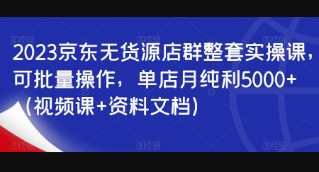 2023京东无货源店群整套实操课,可批量操作,单店月纯利5000+(视频课+资料文档)。