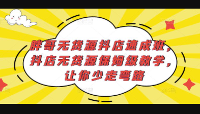 胖哥无货源抖店速成班,抖店无货源保姆级教学,让你少走弯路。价值3980元。无货源模式就是在网上采集其他店铺的商品,然后经过合理的加价后上架到自己的店铺,有顾客下单,我们就在采集商品的地方下单,然后拍下同款商品,填写顾客的信息就可以了。虽然我们是在抖音开店,虽然我们的商品可以通过直播和视频这种转化模式出单,但是我们本身是不需要做直播和剪视频的,而是直接和专业的主播合作就可以了。