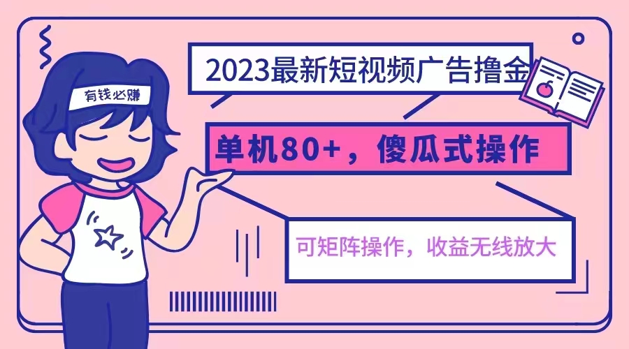 2023最新玩法短视频广告撸金,亲测单机收益80+,可矩阵,傻瓜式操作,小白可上手。