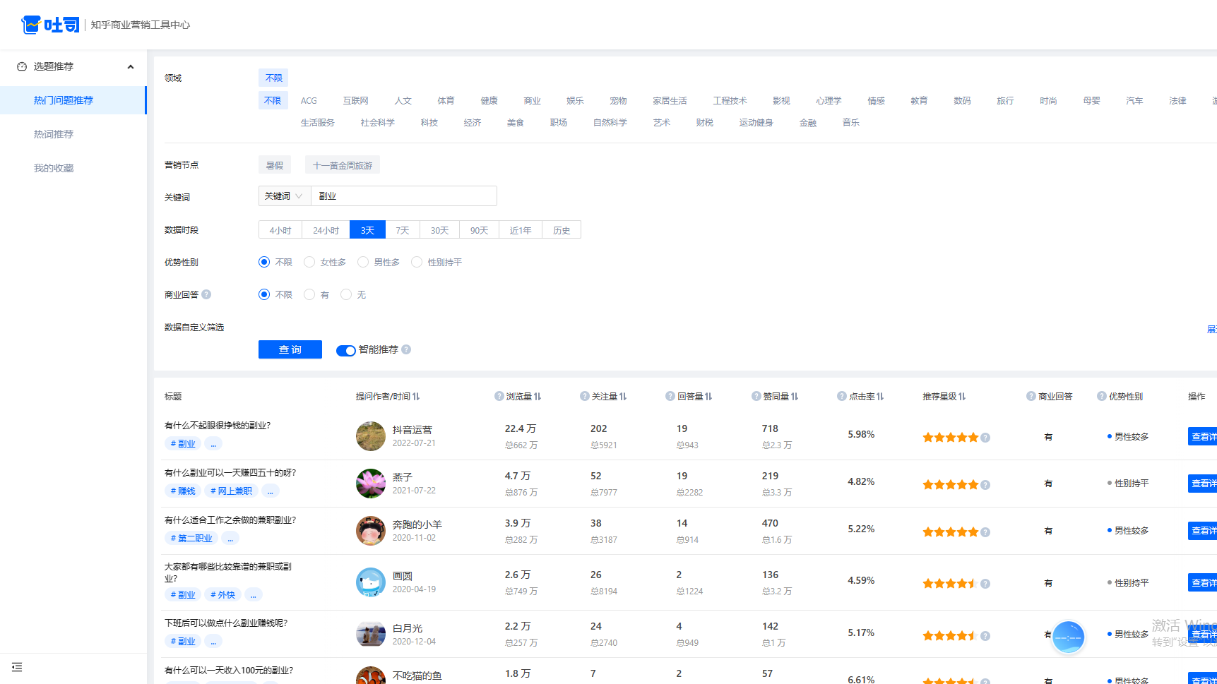 如果你能把知乎引流给玩明白了,你离月入三十W就不远了。因为通过学习和掌握知乎引流,你将能够掌握持续的内容输出能力,较强的逻辑能力和文字组织能力。知乎的流量是特别高质量的,并且知乎上边的用户大部分都是高知人群。这个平台的下沉用户相对抖音快手是比较少的他们的付费能力比较高,并且会更加有耐心一些,做项目更能做出成果。知乎能给我们带来长尾流量;知乎问题会被百度收录。