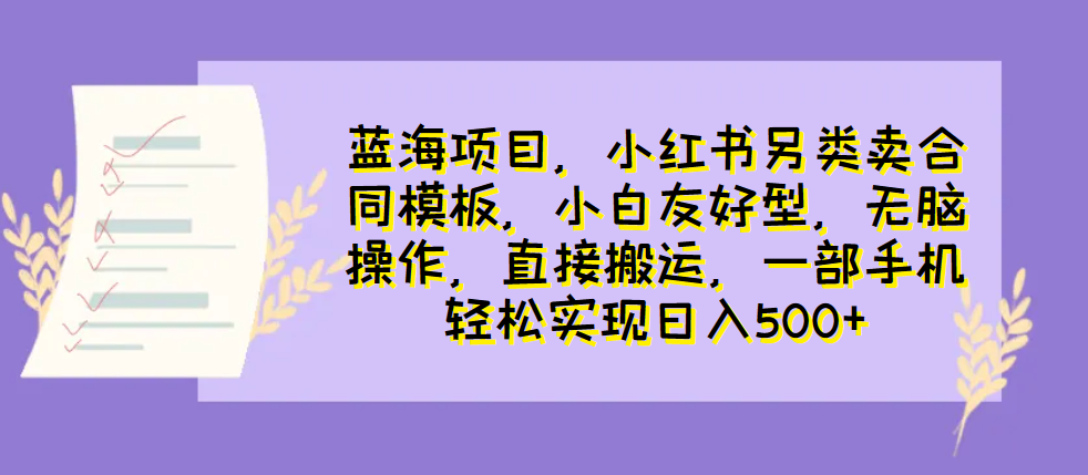 蓝海项目,小红书另类卖合同模板,小白友好型,无脑操作,直接搬运,一部手机轻松实现日入500+,
