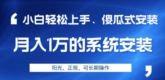 这可以称的上是一个养老项目,很多人做了十几年依然在做,现如今虽然很多人会使用电脑,但是还有很多人是不会安装电脑windows系统的,当你看完课件你就会发现,其实操作非常简单,小白就能几分钟搞定,月入1W很容易。