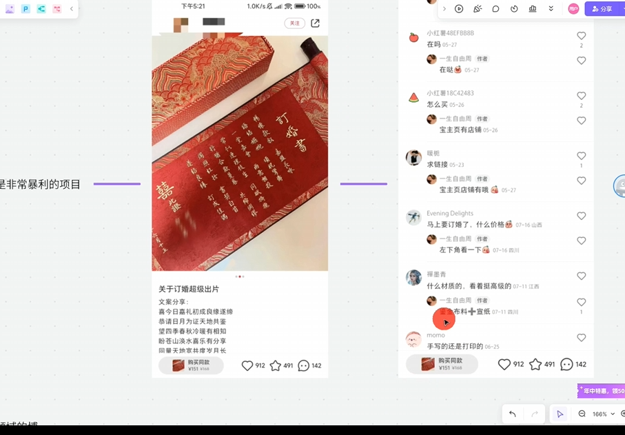订婚书项目是目前非常冷门,但是非常暴利的项目,利润高达200%小红书平台用户,女性占比高达78.6%,其次消费能力强。大家对仪式感越来越重视,小红书订婚书的市场也由此打开,目前这个领域的博主相对较少,属于一个蓝海项目,在小红书发布多种形式的婚书图文,引流到私域或者直接在小红书店铺进行变现。
