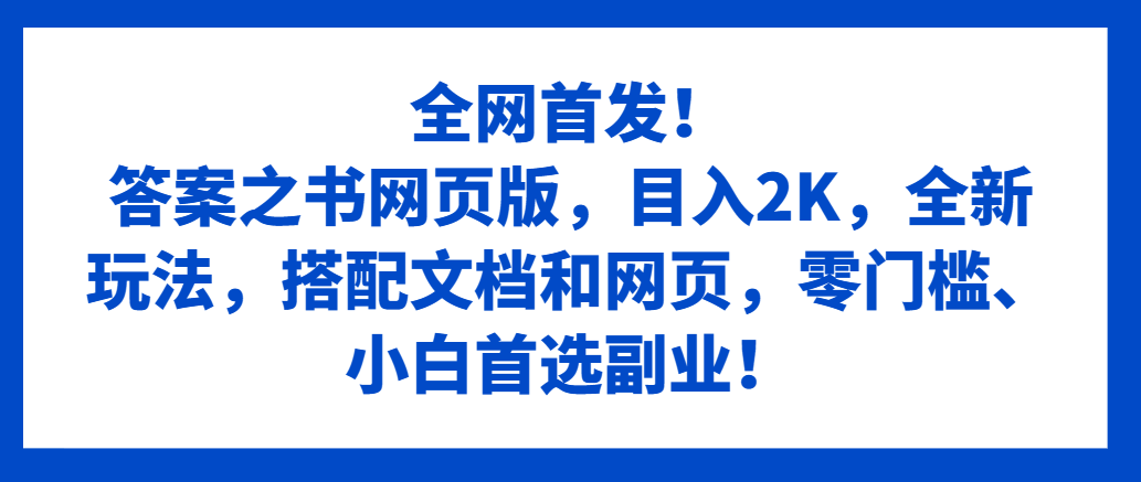 ,目入2K,全新玩法,搭配文档和网页,零门槛、小白首选副业!》。