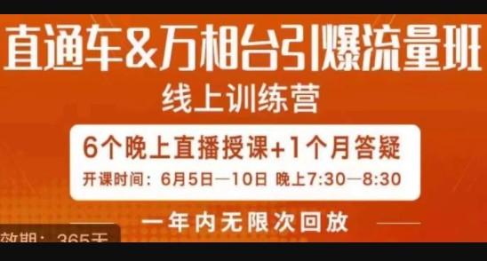 直通车&万相台引爆流量班,6天打通你开直通车·万相台的任督二脉。适合人群:缺乏直通车&万相台的知识体系,打开后台无从下手,凭感觉推广、后台那么多的按钮,靠自己摸索了大半年,还没理清楚,凭感觉设置、新品、稳定期、突破期,投放逻辑理不清,钱浪费了,流量拉不起来、推广思维不够清晰,推广目的不明确,对平台新的规则不了解,没有针对性的方案,投产底。