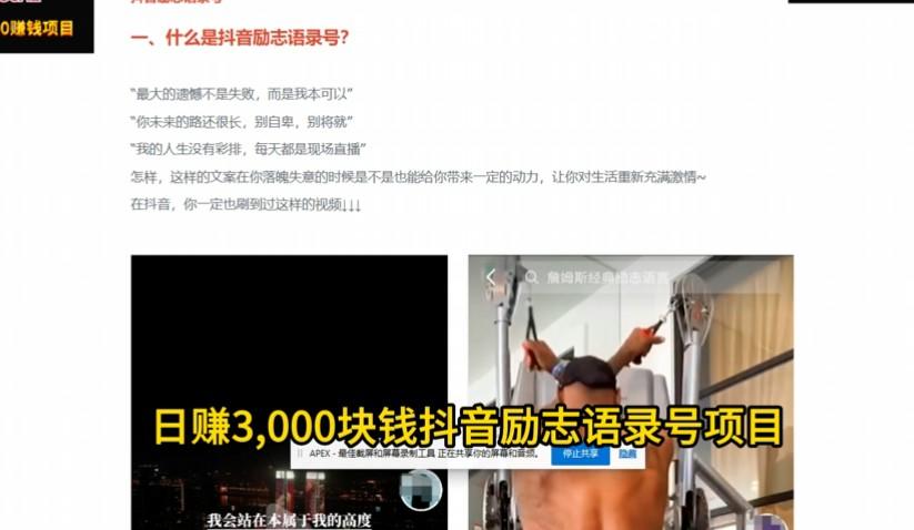 顾名思义,就是专门发布励志语录相关作品的一类账号,这类账号的制作其实不难