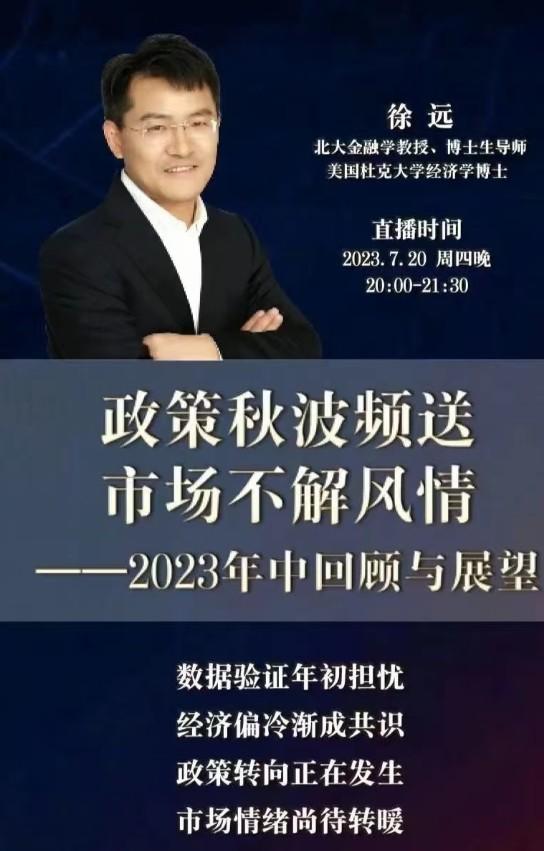 在这场讲座中,徐远回顾了2023年上半年的市场情况,并对下半年进行了展望。他谈到了政策调整对市场的影响,以及市场对政策的反应。