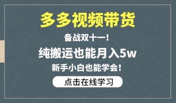 多多视频带货,纯搬运也能月入5w,新手小白也能学会!【备战双十一】