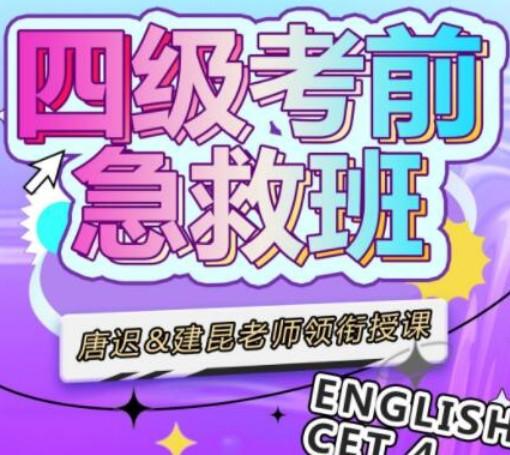 大学英语四级考前急救班是由唐迟领衔的一个备考辅导班。唐迟是一位资深英语教育专家,拥有丰富的教学经验和备考指导经验。考前急救班旨在帮助学生在有限时间内快速提升英语四级考试的能力,提供针对性的备考指导和技巧分享。在课程中,唐迟会针对四级考试的各个部分,如听力、阅读、写作和翻译等,提供重点考点解析、题型解读和答题技巧。学员可以通过参加这个急救班,系统地复习考试内容,提高应试能力,以期在考试中取得好成绩。