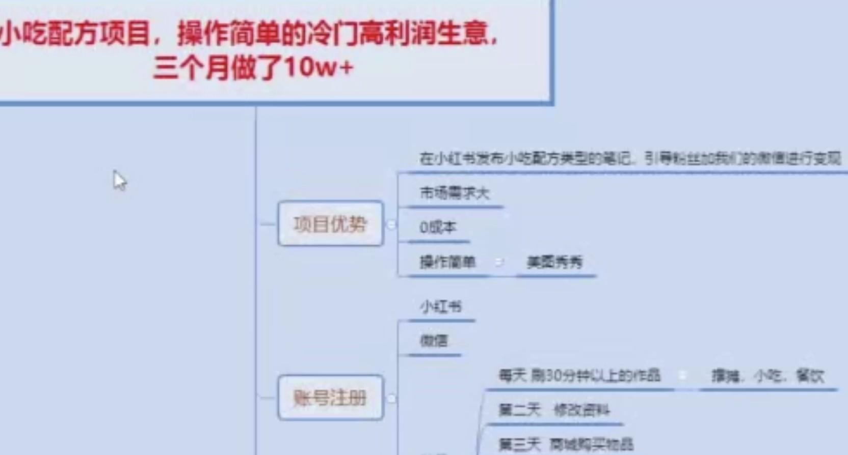 这期给大家介绍一个冷门项目,小吃配方,身边有学员靠这个项目三个月收了10w+,关键是这个项目可以说是0成本,操作简单,新手小白也可以直接上手。卖小吃配方,一单卖几块到几百元,做这个项目的人还不是很多,市场竞争比较小,可以说是一个小众项目吧,刚开始我也以为卖小吃配方没有什么意思,一单才卖几块钱,但是我深入了解之后,觉得这方面的变现方式很有意思,加上目前还在红利期,一定要抓住这个机会。