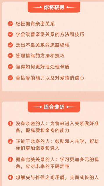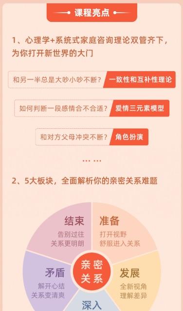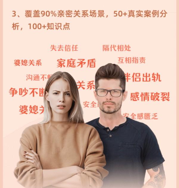 让你学会放弃“控制”、放弃“是非”、放弃“说服”,把生活中的案例进行系统化拆解,学习到【爱情三元素】【行为模式】【角色扮演】等心理概念。
