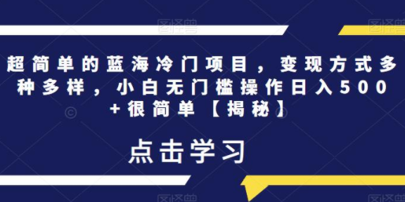 超简单的蓝海冷门项目,变现方式多种多样,小白无门槛操作日入500+很简单【揭秘】,一个超简单的蓝海冷门项目,变现方式多种多样,流量非常的大,账号做起来之后有非常多的用着,操作简单,5分钟一个作品,小白0基础操作完全没问题,我这边也是给大家说的非常详细了。