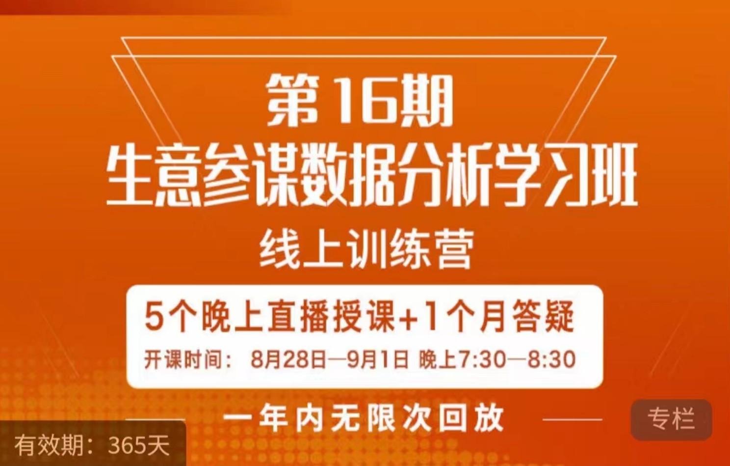 宁静-生意参谋数据分析学习班 线上训练营【第16期】
