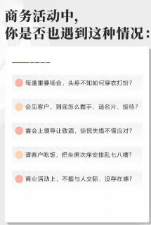 具体到宴请、洽谈、递名片、着装、发型等细节