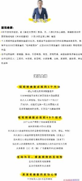 本课程是菜花老师历时四年对《暴走大事件》核武级短视频技巧的系统化研究迭代,整套学习体系包括5个基本功、32个套路、13条避坑指南、互动式视频研究、前景预测等。