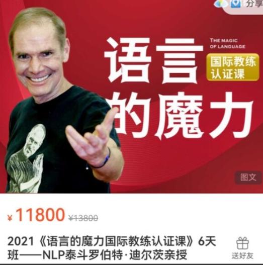 这是一个关于NLP(神经语言程序学)的国际教练认证课程,由NLP泰斗罗伯特·迪尔茨亲自授课。NLP是一种心理学和人际沟通技巧的方法论,旨在帮助个人提升自我意识、改善人际关系、解决问题和实现个人目标。这个课程将为学员提供丰富的理论知识和实践技巧,帮助他们成为优秀的NLP教练。这将是一个为期6天的密集培训班,学员将有机会直接从罗伯特·迪尔茨学习,并与其他来自世界各地的学员交流和分享经验。这将是一个难得的学习机会,可以深入了解NLP的核心理念和技术,提升自己的个人成长和职业发展。