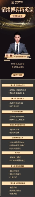 【高笛】情绪博弈精英课是一门专注于情绪管理和博弈心理的课程。在这门课程中,学员将学习如何有效地管理自己的情绪,并在不同的情境下运用博弈心理学原理来优化自己的决策。