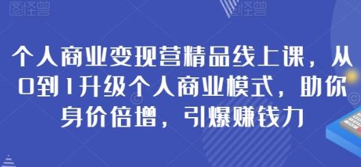 大表姐·个人商业变现营精品线上课,从0到1升级个人商业模式。课程来自大表姐的个人商业变现营精品线上课。从0到1升级个人商业模式,助你身价倍增,引爆赚钱力。把1小时卖给1万人,收入翻N倍,解锁人生更多可能性。所有对于普通人而言,想要赚钱,只有两种方式,1提升一份时间的单价,2把自己经营成销售IP把一份时间多次出售,而这件事情,只要用对了方法,你也可以做到。