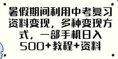 暑假期间利用中考复习资料变现,多种变现方式,一部手机日入500+教程+资料【揭秘】。中考的热度是一点不输于高考的,这一点是被大家忽视的。大多数人都去关注高考赛道,咱们不妨选择中考复习资料这个蓝海赛道。并且我做这个项目的时候,感觉初中生的付费意识是明显高于高中和小学赛道的,即使粉丝不愿意付费,咱们依然可以靠网盘拉新进行变现。算是一个长期稳定项目。