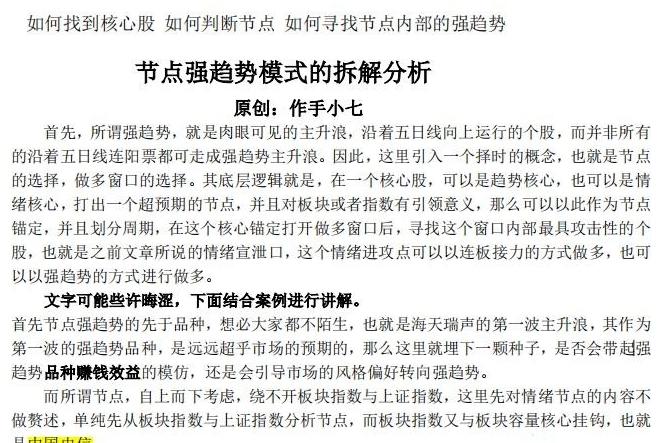 如何找到核心股 如何判断节点 如何寻找节点内部的强趋势