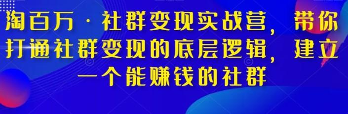淘百万·社群变现实战营,建立一个能赚钱的社群,带你打通社群变现的底层逻辑