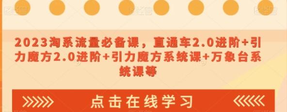 淘系流量课程对于淘宝卖家来说非常重要,能够帮助他们更好地了解和利用淘宝平台的流量资源。从你提到的课程来看,直通车2.0进阶、引力魔方2.0进阶、引力魔方系统课和万象台系统课都是淘宝流量运营的相关课程。