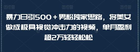 今天给大家带来的项目是《暴力日引500+男粉独家思路,将美女做成极具视觉冲击力的视频,老色批超爱看!变现超级快!单月盈利超2万轻轻松松》这个是我们独家的全新玩法,引流变现非常暴力,精准引流色粉,利用剪辑软件剪映里面的模板,一分钟一个视频,效率非常快,0门槛小白也可以轻松上手,变现超级快,个人以及工作室都可矩阵操作,无脑制作视频,新玩法展示美女视频,视觉感超级强,非常容易上热门,主要是引流到私域卖YW,写真以及语聊(合法),0成本,卖多少赚多少,学员10月份靠这个思路半个月变现10000+,所以说没有’懒惰‘的项目,只有懒惰的人