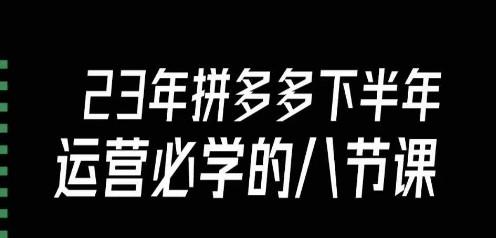 这听起来像是一个非常有趣和有用的课程!下面是一些可能包含在你的《23年下半年拼多多运营必学的八节课》中的主题和内容: