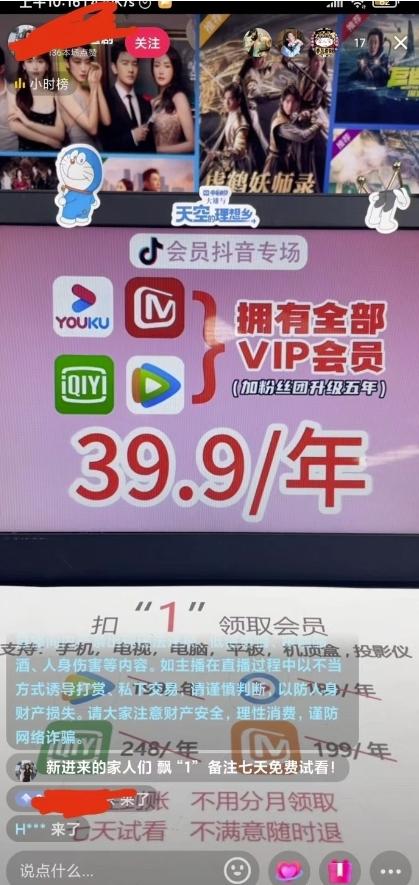 是不是很好奇,平时一年就要二百多的会员,为什么在主播的直播间,四个平台才卖39.9元?