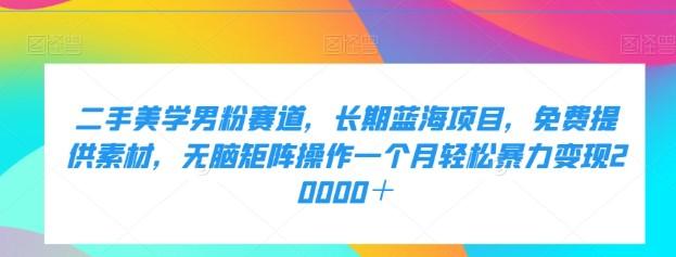 今天给大家带来的项目是《二手美学男粉赛道,长期蓝海项目,免费提供素材,0基础小白也能轻松上手,无脑矩阵操作一个月轻松暴力变现20000+》。很多兄弟不明白我们这个项目司做什么的于是我连夜给大家准备了一下这个公开课,这个项目需求量是非常大的,可以说是供不应求,只要世界上还有男人存在,这个项目就可以一直运营,而且每天只需花费5分钟,操作容易,极易上手。小白0基础0门槛就可以直接上手,本人精心准备的二手美学的素材以及变声器等整套资源也一起免费打包给大家,变现逻辑方式超简单,流量大利润高,这个是一个收益越做越高,越做越上头的项目,抓住蓝海项目,靠做这个二手美学买车买房的人我是见太多了,所以说月入2w是很轻松的事,不过前提还得是大执行力跟得上,努力才会有回报,请不要抱着一夜暴富的心态去做项目!