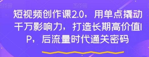 短视频创作课2.0可以帮助你用单点撬动千万影响力,并打造长期高价值的IP。以下是一些通关密码,帮助你在后流量时代取得成功: