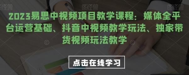 课程来自易思的2023易思中视频项目教学课程。主要内容包括:自媒体全平台运营基础、抖音中视频教学玩法、独家带货视频玩法教学。