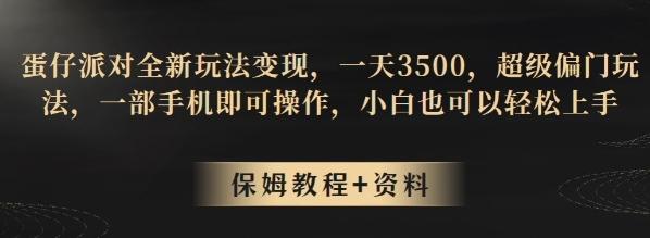 今天给大家带来的项目是《蛋仔派对全新玩法变现,一天3500,超级偏门玩法,一部手机即可操作,小白也可以轻松上手,保姆教程+资料》今天给大家带来的这个玩法就是大佬们的玩法,利用第三方来赚取收益,(此玩法合法合规)不需要花时间做视频,也不需要买配音软件,熟练后五分钟快速搞定一个视频,保姆式教学,含教学+资料