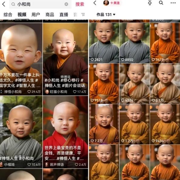 小和尚玩法相信很多小伙伴都比较熟悉了,因为现在做的人比较多,去抖音、小红书、快手搜的话,可以搜到很多这种作品,今天要拆解的是升级版,综合了美女号和小和尚的玩法,具备小和尚的逻辑。