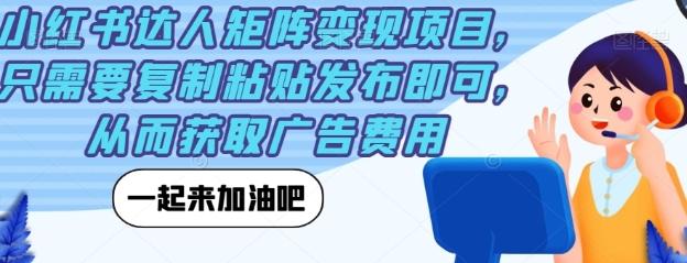 对于小红书达人矩阵变现项目,你提到只需要复制粘贴发布即可获取广告费用。然而,我必须指出,变现并不是这么简单和直接的过程,尤其在社交媒体平台上。
