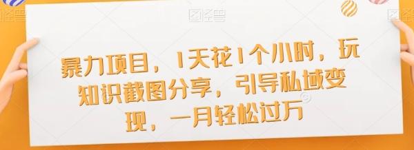 今天给大家带来的《暴力项目,1天花1个小时,玩知识截图分享,引导私域变现,一月轻松3w+,一天进账1000+都不是梦》