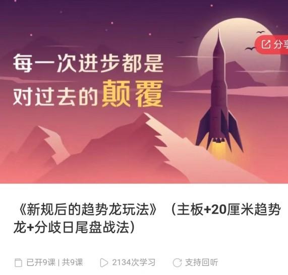 总之,这段课程主要讲述了全面注册制新规对市场的影响以及趋势龙的做法,对于想要了解市场趋势和投资策略的投资者具有一定的参考价值。